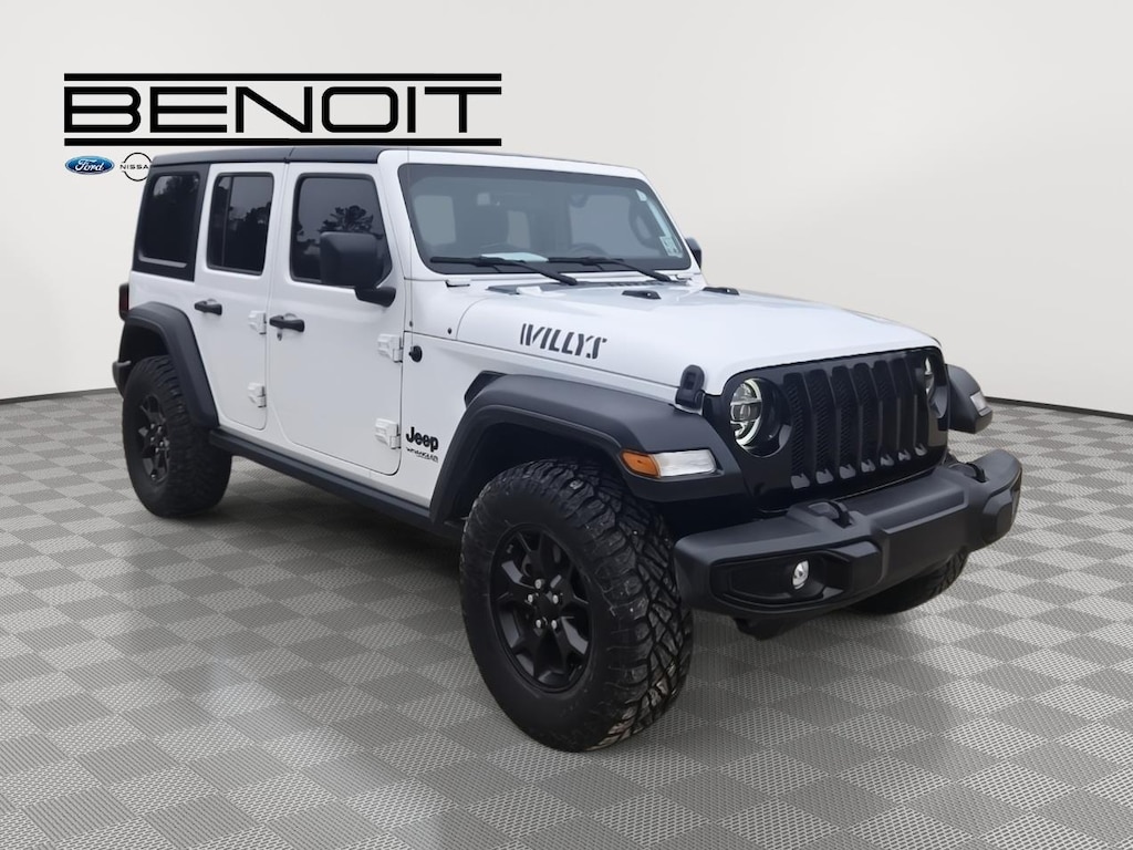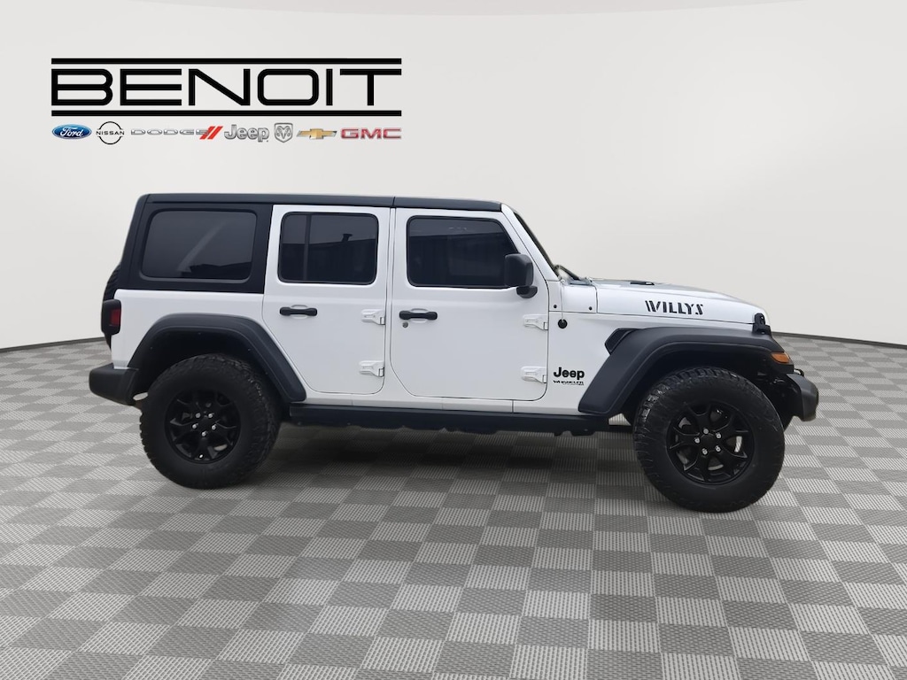 2021 Jeep Wrangler Unlimited Willys Bright White Clearcoat with Black Interior.