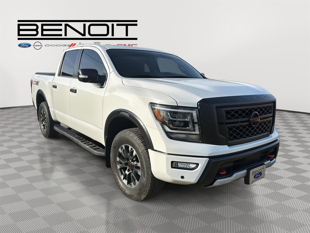 2024 Nissan Titan PRO-4X Glacier White with Black Interior.