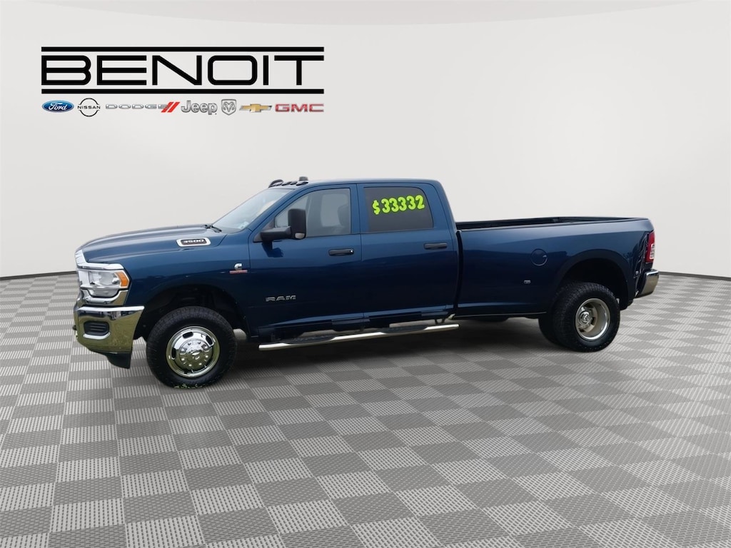 2020 Ram 3500 Tradesman Patriot Blue Pearlcoat with Black Interior. ENGINE: 6.7L I6 CUMMINS TURBO DIESEL, TRANSMISSION: 6-SPEED AUTOMATIC 68RFE, QUICK ORDER PACKAGE 2HA TRADESMAN, 3.73 AXLE RATIO, WHEELS: 17" X 6.0" STEEL CHROME CLAD, TIRES: LT235/80R17E BSW AS, BLACK, CLOTH 40/20/40 BENCH SEAT, GVWR: 14,000 LBS, DUAL REAR WHEELS, TRADESMAN LEVEL 2 EQUIPMENT GROUP, CHROME APPEARANCE GROUP, TRAILER BRAKE CONTROL, REAR WHEELHOUSE LINERS, REAR WINDOW DEFROSTER, CLEARANCE LAMPS